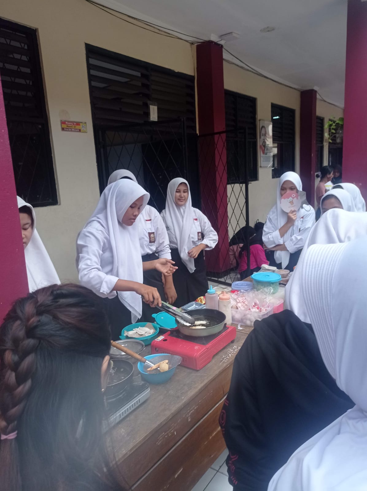 Guru SMKN 3 Tangerang (Kiri ke Kanan) Ibu Syifa Humairoh, M.Pd., Bapak Maulana Yusuf, S.Pd., Ibu Nurhayati, S.Pd., Ibu Meina Fitri Riani, S.Pd., Ibu Nurmawati, S.P. dan Bapak Muhammad Palak, S.Pd. menyaksikan kegiatan